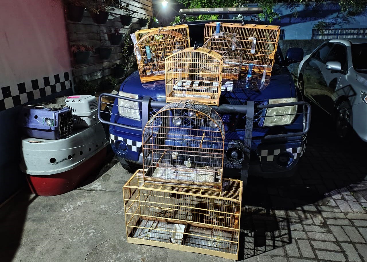 A equipe visualizou algumas gaiolas na parede de uma residência na rua Caco Velho e, na averiguação, constatou tratar-se de aves das espécies pintagol (1), picharro (2), papa-capim (1), tico-tico (1) e coleirinha (2). Os animais da fauna silvestre estavam mantidos em cativeiro sem autorização do Ibama.