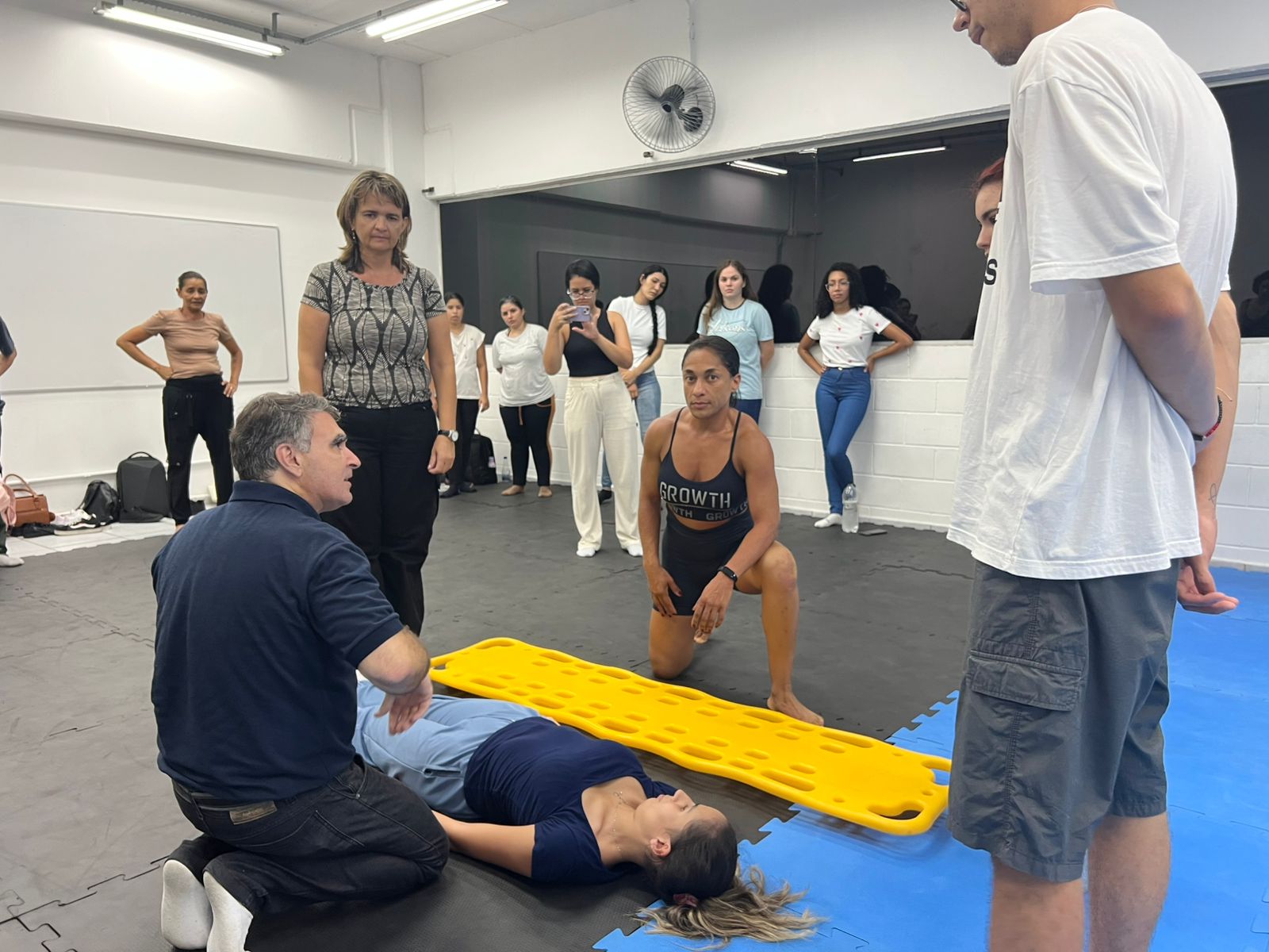 Uma das aulas de Saúde que abriu a semana foi a de Primeiros Socorros em Parada Cardiorrespiratória, atraindo alunos de Biologia, Educação Física, Biomedicina e Enfermagem de diversas instituições e interessados no assunto. Depois da ministração teórica, os participantes tiveram a chance de aplicar o aprendizado na prática em bonecos de treinamento.
