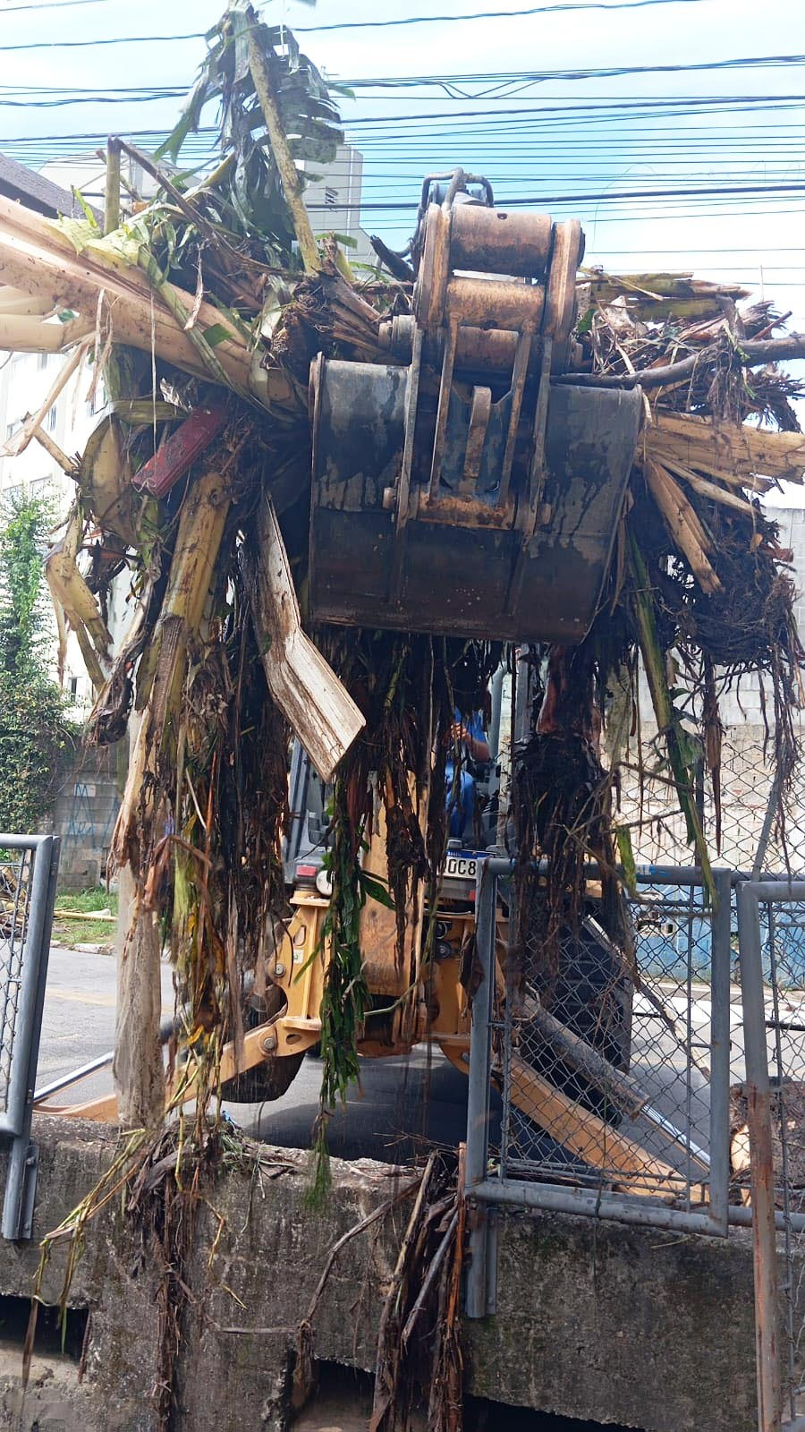 A travessia do córrego estava toda obstruída por vegetação, madeira, móveis, garrafas PET, entre outros entulhos. De acordo com a regional Cumbica da SAR, foi preciso dois caminhões para levar os resíduos.