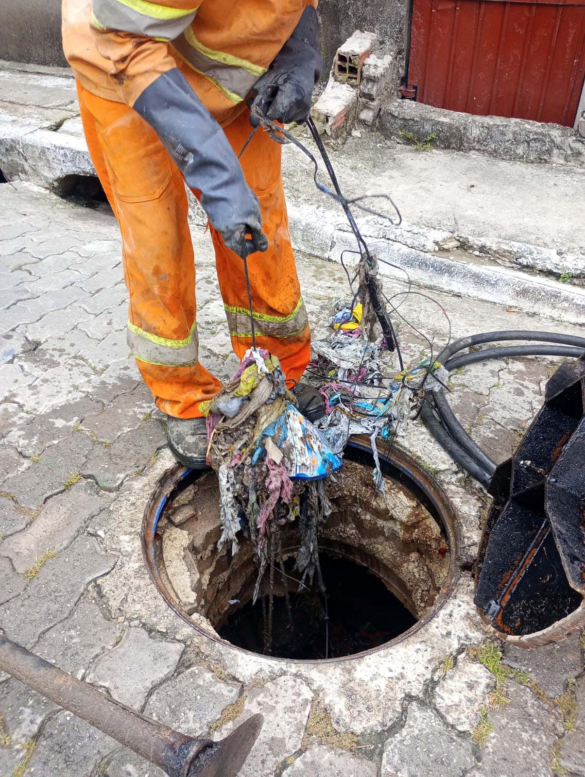 O trabalho preventivo realizado em bocas de lobo com o apoio de um caminhão hidrojato tem por objetivo principal evitar o alagamento de ruas e avenidas em dias de fortes chuvas.