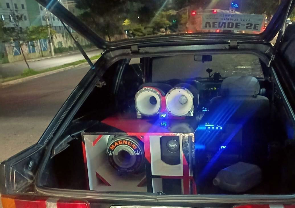 Por volta das 3h, a equipe em patrulhamento flagrou o mesmo veículo ainda na adega afetando a paz pública por usar equipamento com som em volume não autorizado pelo Código de Trânsito Brasileiro, conforme o artigo 228. Diante disso, o proprietário foi autuado, mas tentou fugir com o veículo do local, sendo detido e encaminhado ao 1º Distrito Policial, especialmente por apresentar forte odor etílico.