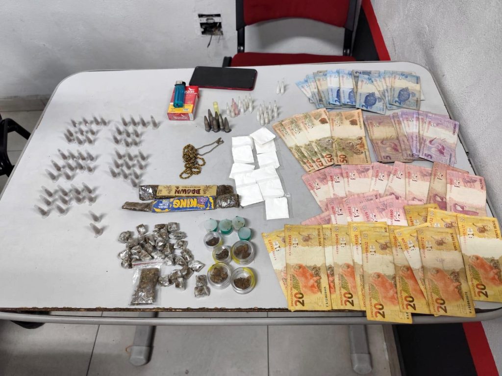 Com ele foram encontradas uma pochete e uma sacola contendo substâncias aparentemente entorpecentes, além de certa quantia em dinheiro. O homem foi encaminhado ao 7º Distrito Policial, assim como os materiais apreendidos, para conhecimento da autoridade de plantão, que submeteu as substâncias a perícia do Instituto de Criminalística.