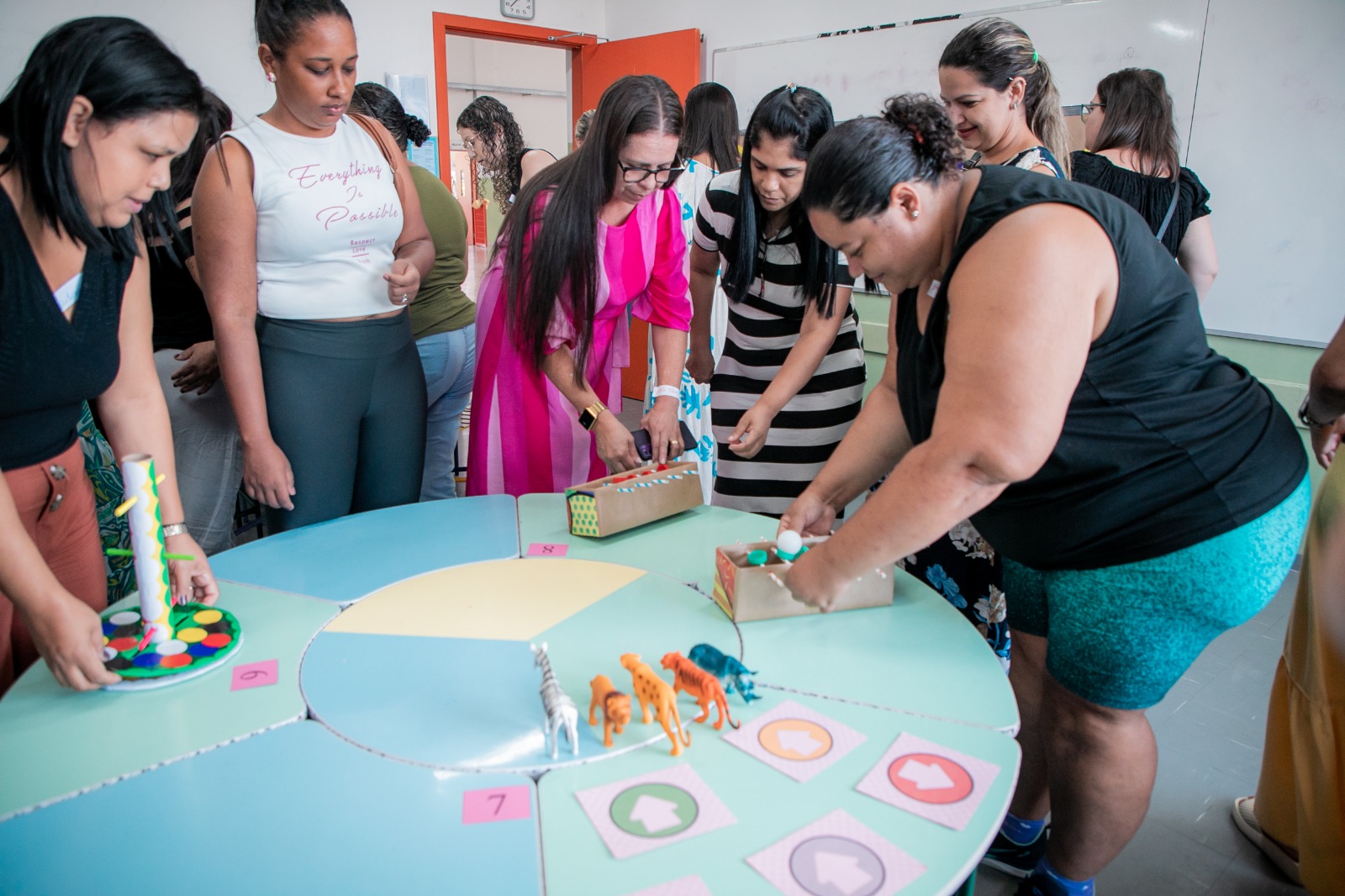 Reflexões sobre as práticas e a importância do brincar com momentos de diversão e a manipulação de materiais pedagógicos também marcaram o encontro de planejamento das escolas. “Momentos de construção de conhecimentos coletivos são de grande importância para o planejamento, principalmente agora, após os primeiros dias de aula, em que já conhecemos as crianças e suas realidades. É importante trazer novas possibilidades de brincar, pois estamos inseridos em uma comunidade com poucos recursos”, explicou Ana Lúcia Cirillo da Silva, diretora da escola parceira Nossa Senhora de Lourdes, localizada na Vila Itapegica.