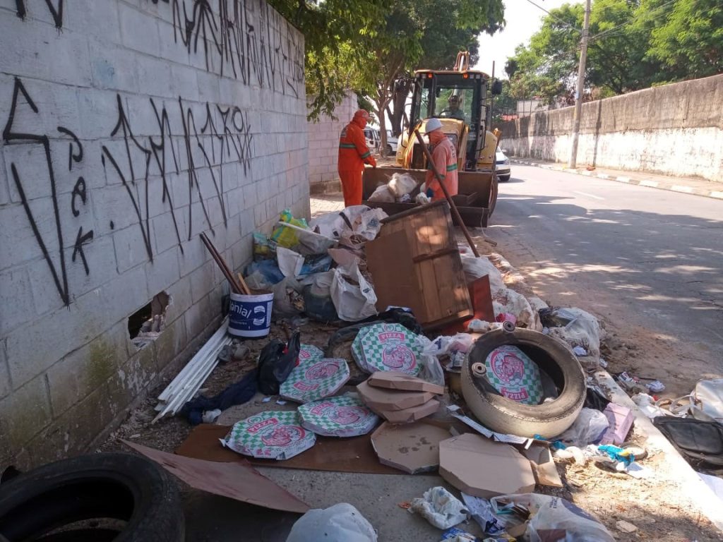 Aproximadamente 40 metros cúbicos de resíduos foram removidos pela Secretaria de Administrações Regionais (SAR) de Guarulhos nesta segunda-feira (10) na rua Guilherme Lino dos Santos, no Jardim Flor do Campo.