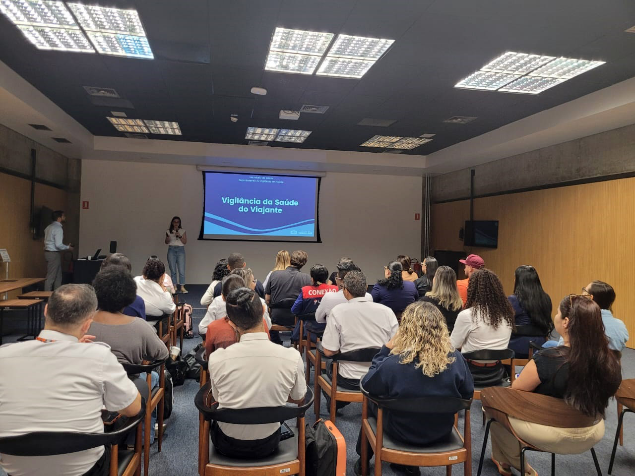 A palestra Doenças Emergentes e Reemergentes no Mundo e Principais Sinais e Sintomas, ministrada pelas profissionais Fernanda Nunes da Matta Carmo e Paula Andrade Alvares, do Centro de Informações Estratégicas de Vigilância em Saúde, trouxe informações essenciais para que os agentes possam identificar sinais de alerta e agir preventivamente para evitar a disseminação de doenças. O treinamento reuniu cerca de 70 profissionais.