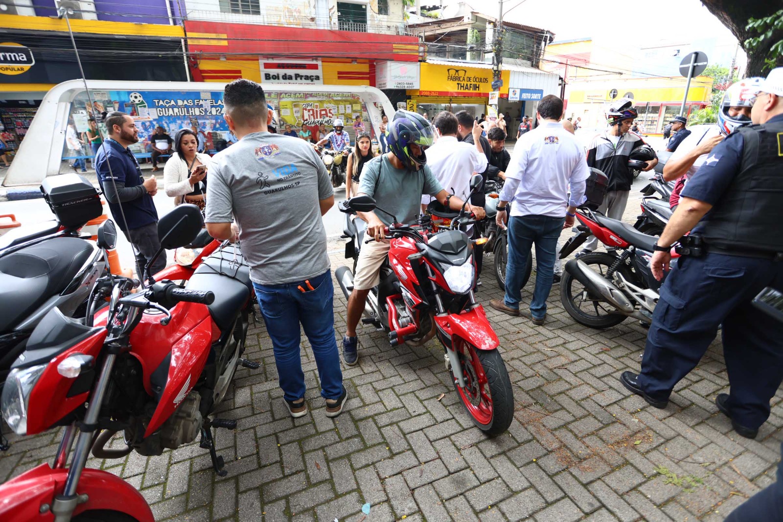 Mais de 500 pessoas, entre motociclistas, ciclistas, condutores e pedestres, foram abordadas nesta quarta-feira (19) na praça Oito de Dezembro, no Taboão, durante a blitz educativa coordenada pela Secretaria de Transportes e Mobilidade Urbana (STMU) de Guarulhos, ação que promoveu conscientização e orientação sobre a importância da segurança viária.