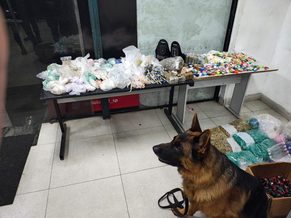 Na noite de sábado (5), um homem foi detido em um barraco na passagem Antônio Nunes da Silva, no Taboão. Na averiguação do local, os agentes localizaram três tijolos de maconha, além de 2.082 embalagens prontas para a comercialização contendo cocaína e outras 923 com maconha, três balanças de precisão, oito facas, três radiocomunicadores, um liquidificador, uma peneira, dois cadernos com a contabilidade do tráfico e oito mil eppendorfs vazios.