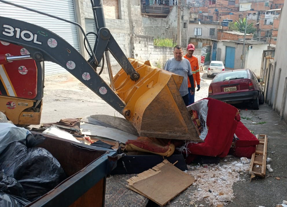 A Prefeitura de Guarulhos promoveu nesta quinta-feira (24) a remoção de aproximadamente 90 toneladas de materiais descartados irregularmente em diversos pontos da região dos Pimentas.