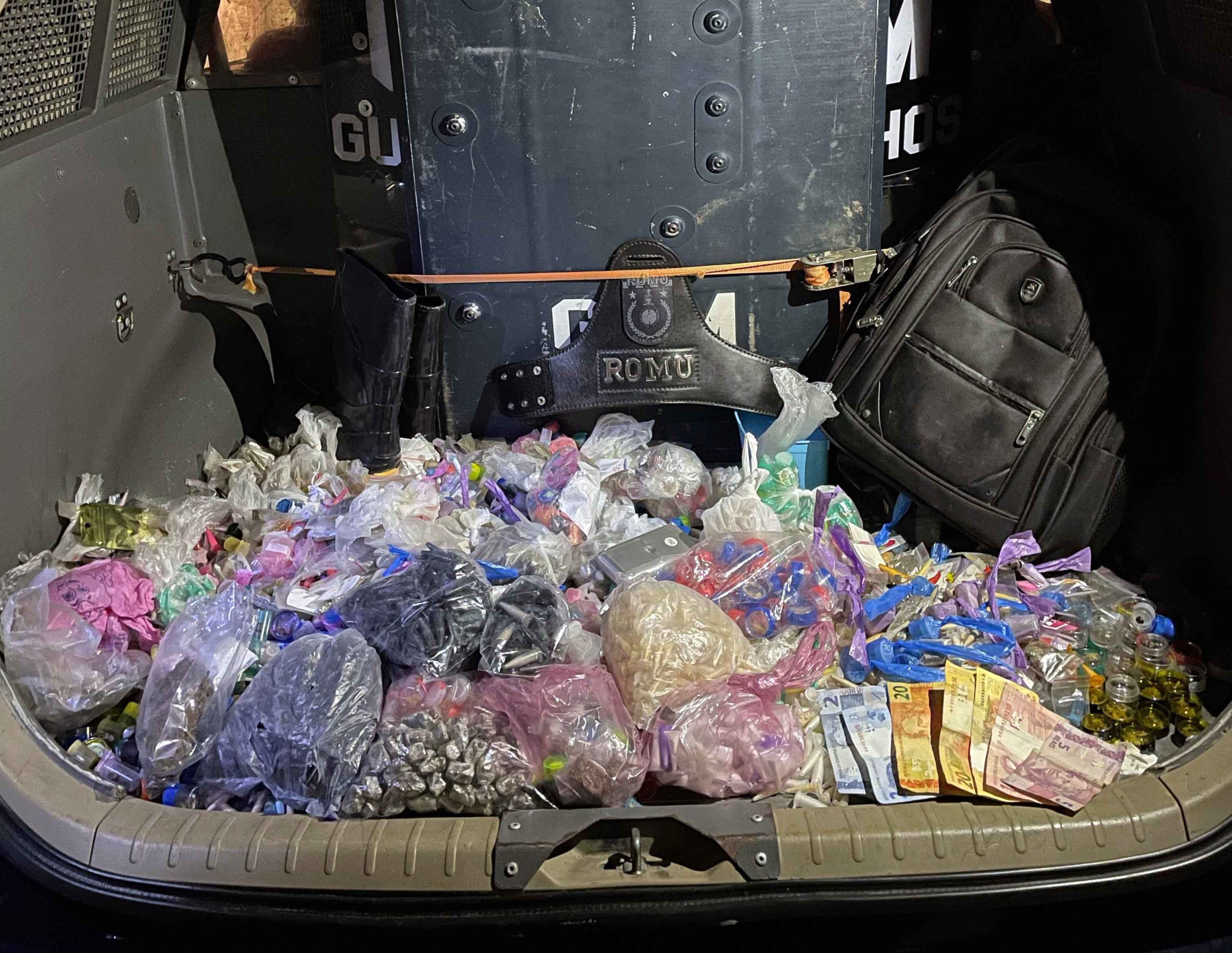 Com apoio de outras equipes da Romu, o suspeito foi conduzido ao 1º Distrito Policial (Av. Monteiro Lobato, 244 – Centro), onde a autoridade de plantão solicitou perícia nas substâncias apreendidas. O laudo técnico confirmou o total de 8,6 kg de entorpecentes, distribuídos em 4.457 porções de cocaína e 1.309 de maconha.
