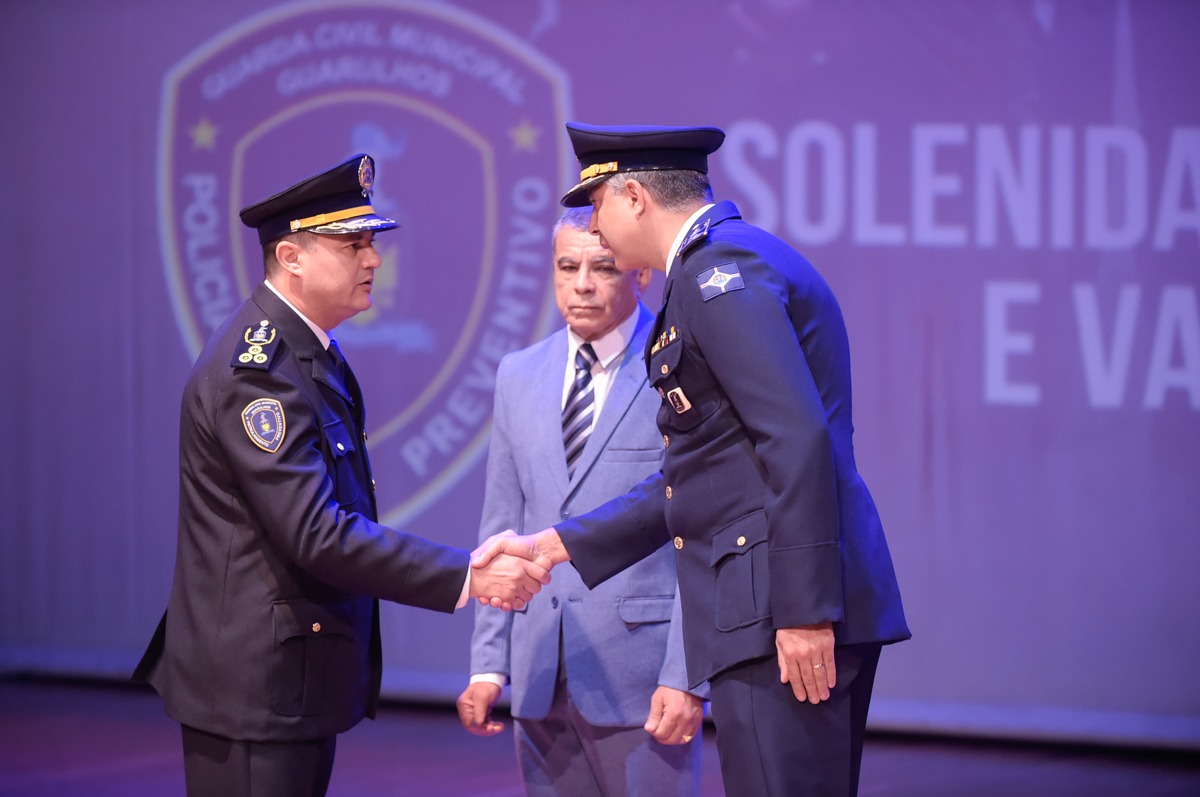 Na manhã desta quinta-feira (8), a Secretaria para Assuntos de Segurança Pública (SASP) promoveu uma emocionante solenidade no Teatro Adamastor, marcando a passagem de comando do Policiamento Municipal de Guarulhos e a valorização profissional de seus agentes. O evento contou com a presença de autoridades civis, militares, representantes da sociedade civil e familiares dos homenageados, que prestigiaram esse momento significativo para a corporação.
