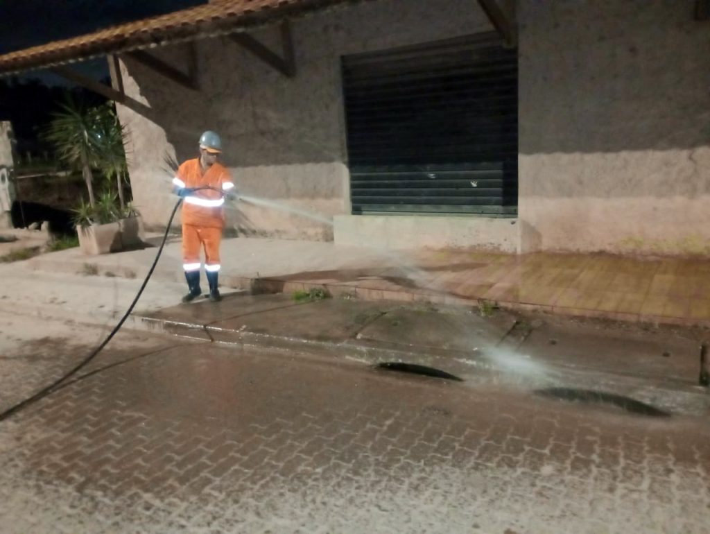 Para realizar a limpeza foi disponibilizado um caminhão hidrojato, que utiliza água sob pressão para remover com mais agilidade os resíduos acumulados que impedem o fluxo normal das águas pluviais.