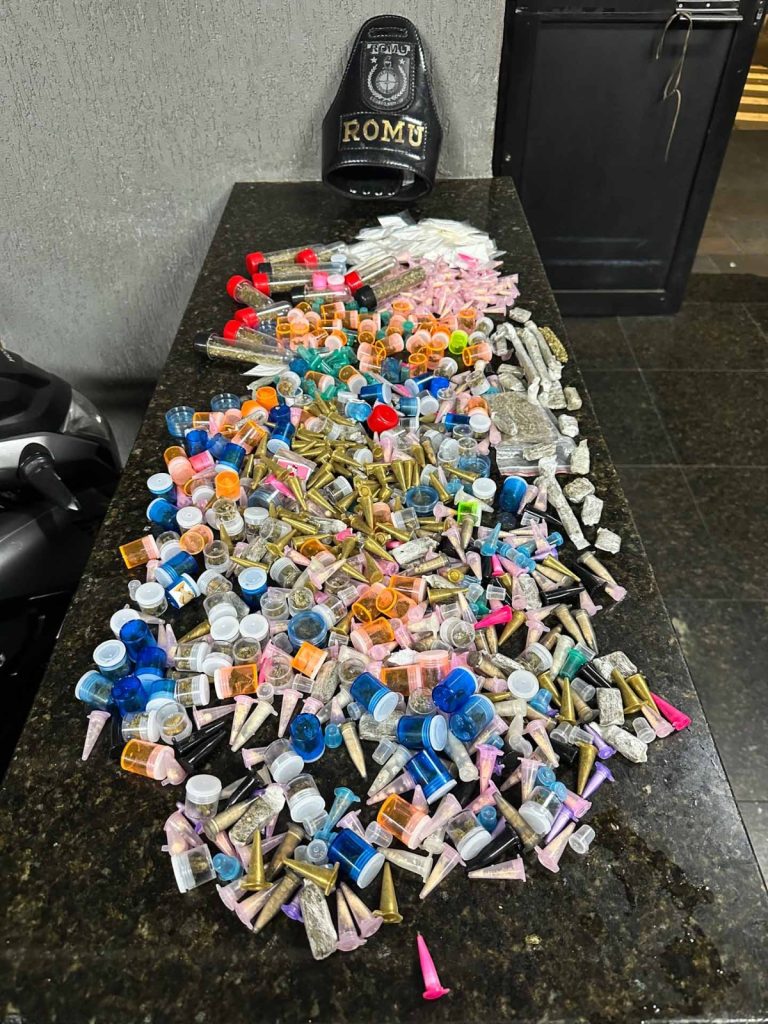 Na abordagem foram encontradas quase 900 embalagens contendo substâncias entorpecentes, além de R$ 49 em dinheiro. O suspeito e o material foram encaminhados ao 1º Distrito Policial (Avenida Monteiro Lobato, 244 – Centro), onde a perícia confirmou que a bolsa continha 437 embalagens de cocaína e 450 de maconha, totalizando 1,4 kg de drogas.