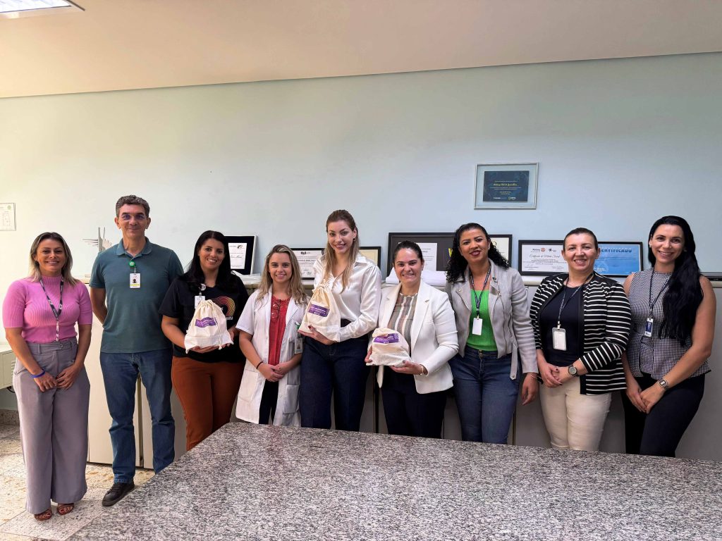 Os kits contêm itens essenciais à higiene das parturientes e dos bebês como absorventes, creme dental, escova de dente, xampu condicionador e sabonetes. Os produtos foram doados pela empresa Hitachi e acondicionados em bolsas sustentáveis confeccionadas em algodão cru pelas alunas do curso de costura da Casa Clara Maria Vila Galvão.