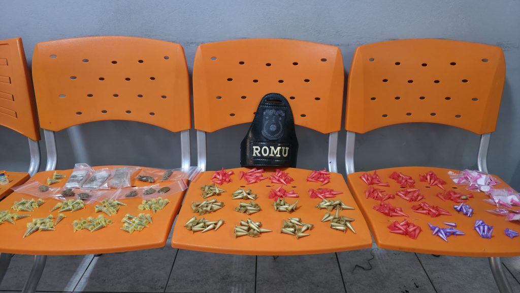 No primeiro caso, agentes da Ronda Ostensiva Municipal (Romu) apreenderam um adolescente na praça Mara Vitti, no Jardim Toscana. Com ele foram encontradas 646 embalagens contendo cocaína e maconha. A apreensão ocorreu após denúncias anônimas e averiguação da equipe, que flagrou o jovem com os entorpecentes em uma bolsa.