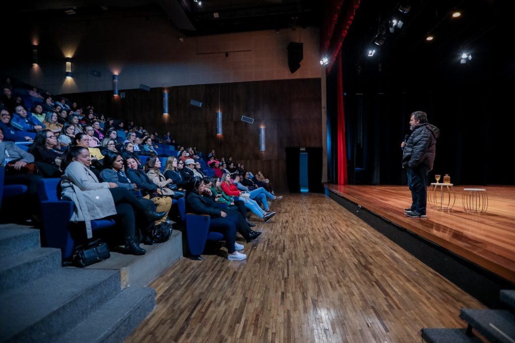 O brincar na perspectiva das crianças e na oferta de espaços foi tema do encontro com os gestores das escolas da rede municipal na manhã desta quinta-feira (29), no teatro do CEU Ponte Alta. O encontro, parte das ações formativas da Semana Mundial do Brincar, objetiva o debate sobre a promoção de ambientes seguros e encantadores, cultivando as melhores condições para que a infância floresça.
