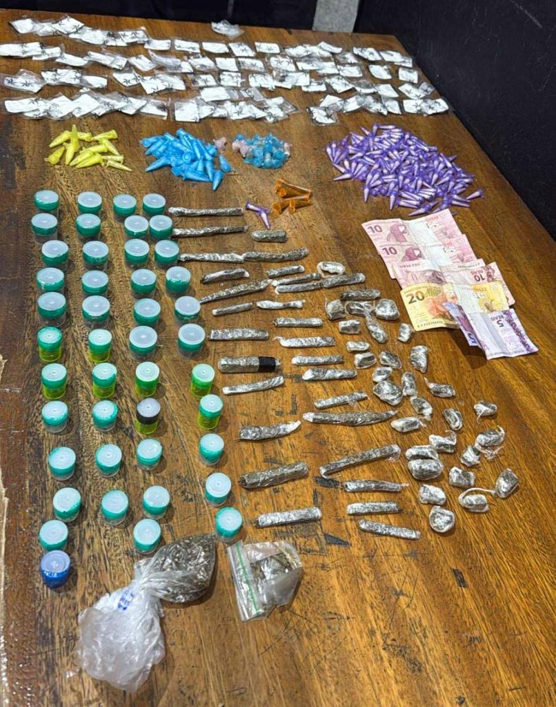 Durante patrulhamento preventivo pela rua Nicolau Dimitrow, a equipe de policiamento avistou o suspeito em atitude suspeita. Ao abordá-lo, os guardas encontraram uma sacola contendo 291 porções de cocaína, 98 porções de maconha e R$ 85 em dinheiro, configurando a prática do tráfico de drogas.