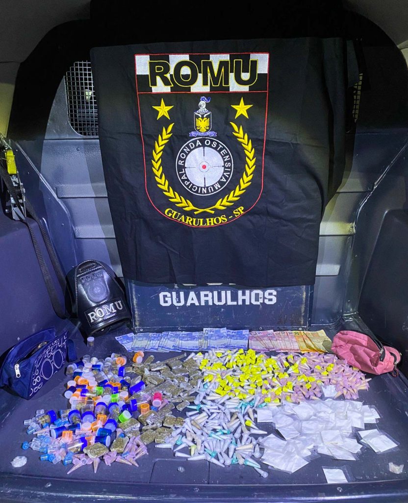 Durante patrulhamento preventivo, os agentes abordaram o suspeito que carregava uma sacola com 740 porções de cocaína e maconha, além de R$ 195 em dinheiro. Diante da situação, o indivíduo recebeu voz de prisão e foi conduzido ao 1º Distrito Policial (Avenida Monteiro Lobato, 244 – Guarulhos), onde o delegado registrou o auto de prisão em flagrante por tráfico de drogas.