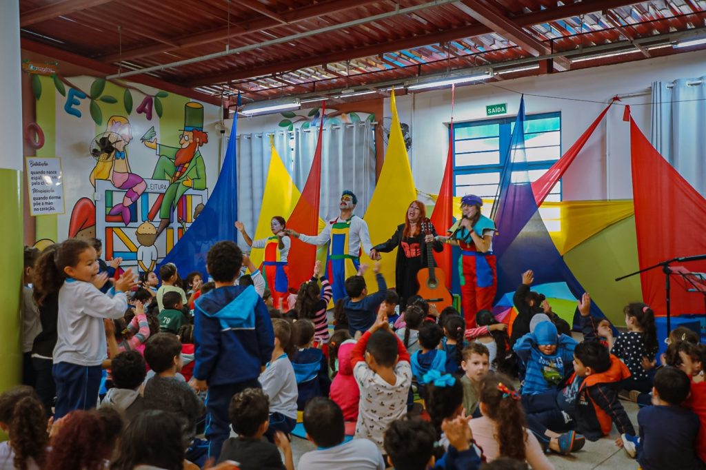 Os alunos da EPG Margarida Maria da Conceição, no bairro Rosa de França, assistiram nesta terça-feira (3) ao espetáculo teatral “Dois personagens sem história”. A iniciativa, promovida pela Prefeitura de Guarulhos por meio da Secretaria de Educação, oferece apresentações infantojuvenis nos CEUs e Centros Municipais de Educação ao longo do ano.