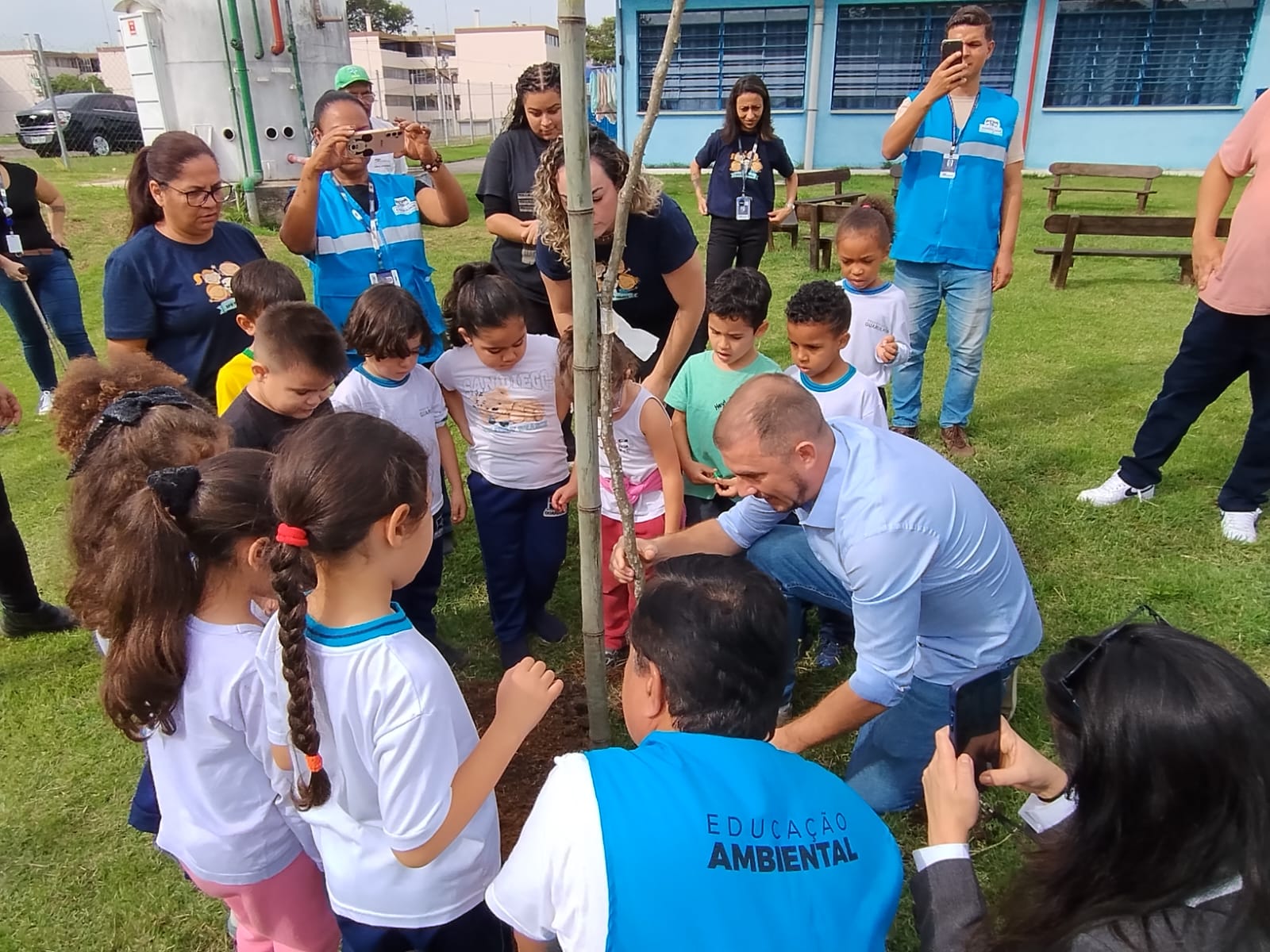 Acompanhado pelos estudantes da EPG, Surfista plantou uma muda de pau-brasil, árvore símbolo do país, protegida por lei devido ao risco de extinção pela exploração predatória. “Plantar árvores hoje é garantir o futuro de todos nós”, disse o vice-prefeito.