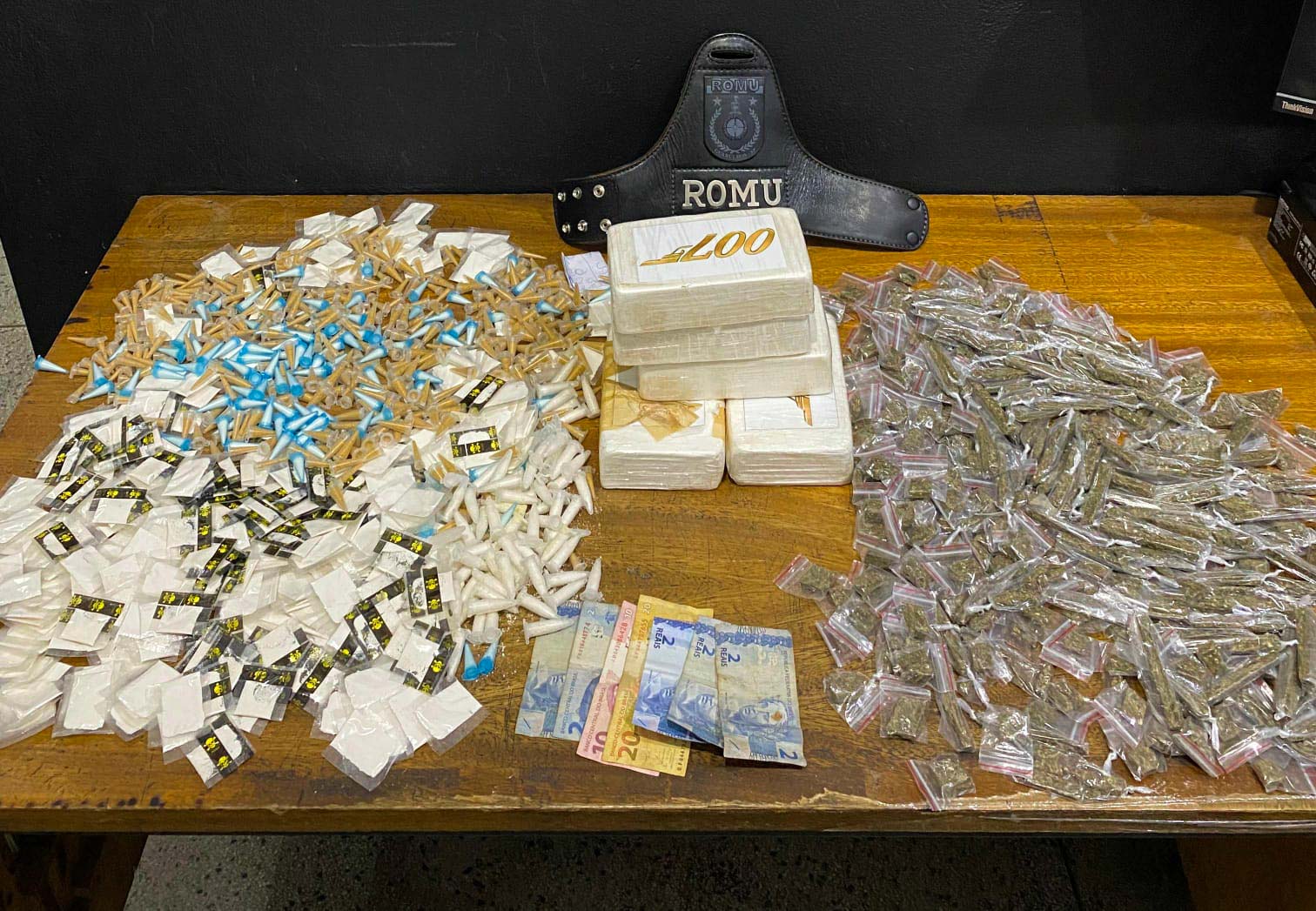 Os guardas depararam com o suspeito carregando uma mochila e, ao abordá-lo, encontraram no interior do volume cinco tabletes de cocaína com aproximadamente 1 kg cada, totalizando 5 kg da substância. Além disso, havia 1.435 porções já embaladas e prontas para a venda, sendo 600 de cocaína e 340 de maconha, entre outras.