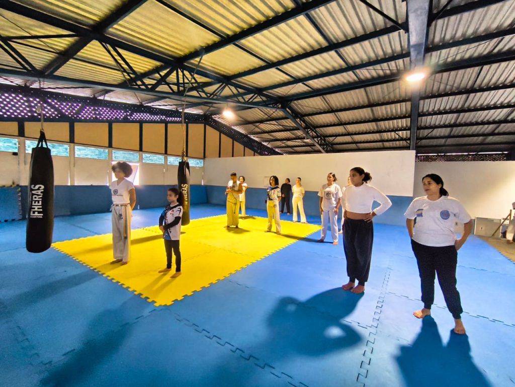 A Subsecretaria da Igualdade Racial de Guarulhos participou no último domingo (8) da vivência Mulheres da Capoeira, destinada exclusivamente ao público feminino no complexo esportivo João do Pulo, no Jardim Divinolândia. A atividade teve como foco a importância da mulher na capoeira, inclusive por meio de uma experiência que objetivou fazer um resgate emocional e temporal sobre o surgimento da capoeira durante a escravidão como forma de resistência e autodefesa dos escravizados.