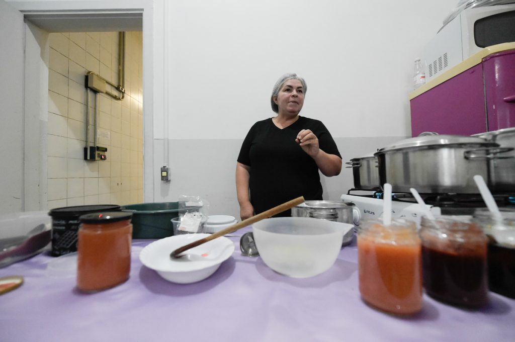 “As mulheres têm que aproveitar as oportunidades que surgem para aprender a fazer algo, vender e empreender. Assim ajudam em casa e têm um dinheiro extra para gastar com si mesmas”, disse a professora voluntária da oficina, Sandra Lucia Mendes Alves Valentin, que discorreu sobre técnicas de preparo de compotas, receitas, higienização da embalagem, conservação e armazenamento e precificação de produtos.