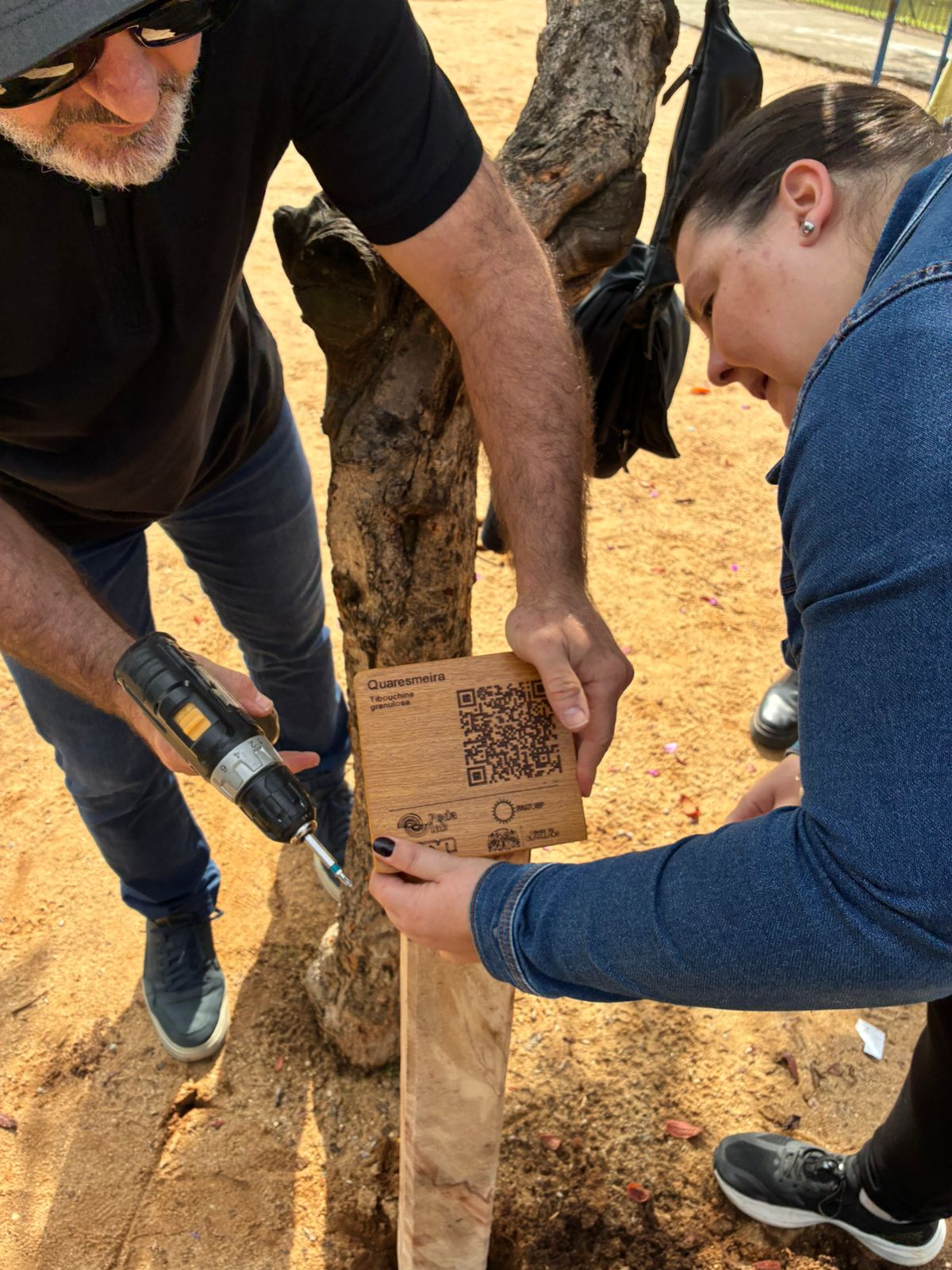 Também fez parte da atividade a instalação de um banco planejado e confeccionado pelos alunos, com resíduos florestais provenientes de sobras de podas feita pela Sema. A princípio, duas árvores receberam a identificação. A parceria prevê a instalação de mais 13 placas.