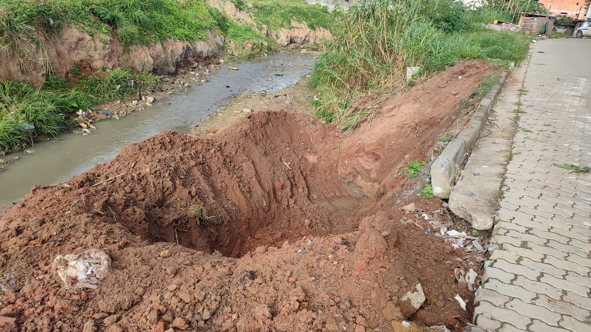 A rua Avelino Alves foi pavimentada por meio da implantação de piso intertravado no final de 2024 e, à época, a via não foi contemplada com um sistema de drenagem para a captação da água das chuvas. O volume das precipitações provocou o deslizamento do talude, que será reconstruído para estabilizar o solo, sem contar que a via fica às margens do córrego Parati-Mirim, que também contribuiu para o agravamento da situação.