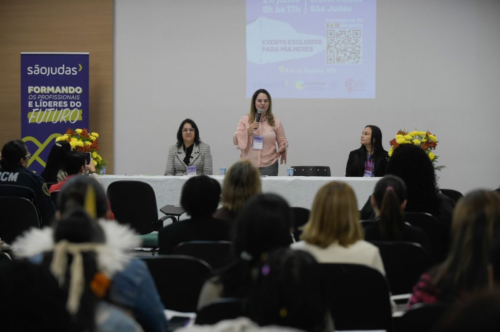 Nesta sexta-feira (27) a 5ª Conferência Municipal de Políticas para as Mulheres “Mais Democracia, Mais Igualdade e Mais Conquistas para todas” reuniu uma plateia de mais de 150 mulheres no auditório da Universidade São Judas Tadeu, na Vila Camargos. A subsecretária de Políticas para as Mulheres, Vanessa de Jesus, participou da abertura juntamente com a primeira-dama e presidente do Fundo Social de Solidariedade, Caroline Sanches, a presidente do Conselho Municipal de Políticas para as Mulheres (CMPM), Simone Lima, representantes do Legislativo Municipal, entre outras autoridades.