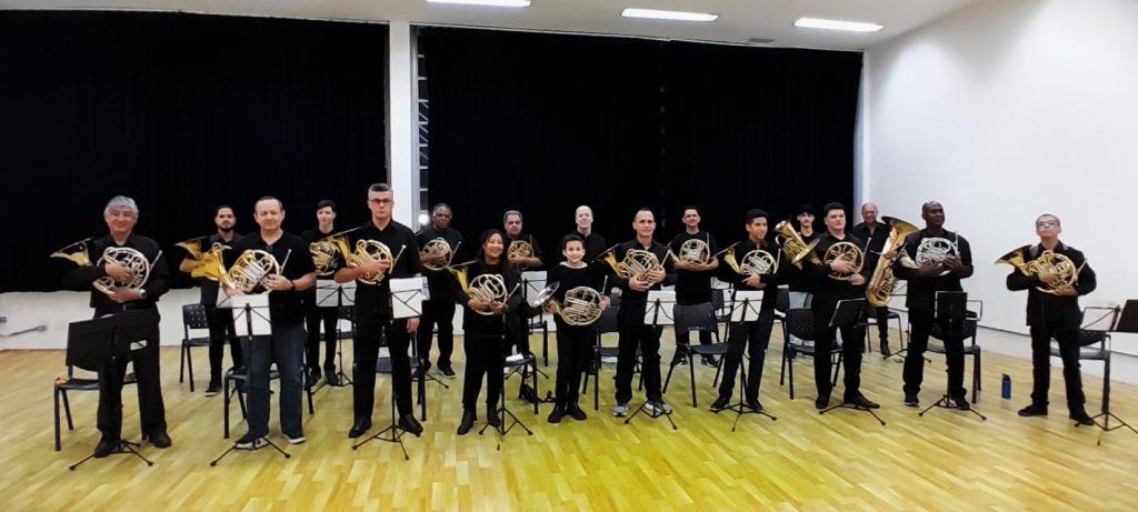 A formação em trompa faz parte das atividades e cursos livres oferecidos gratuitamente pela Prefeitura de Guarulhos, por meio da Secretaria de Educação, em diversos espaços educacionais.