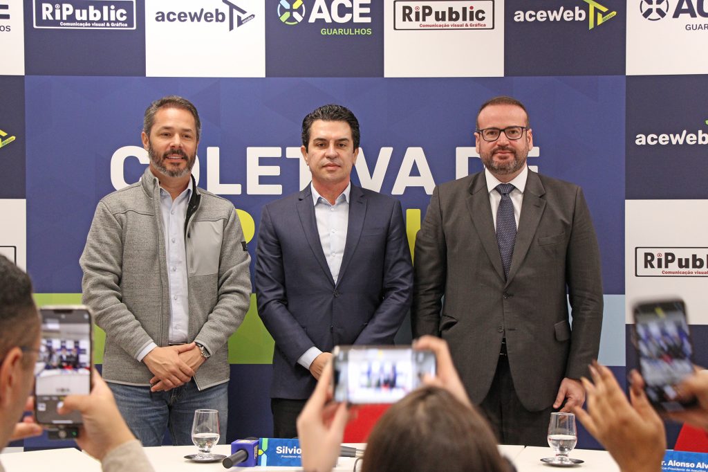O presidente Silvio Alves comandou a coletiva, ao lado do deputado federal Saulo Pedroso (PSD-SP) e do vice-presidente Jurídico da ACE, Alonso Alvares. Representantes de mais de 10 veículos de comunicação da região estiveram presentes na ACE e fizeram perguntas sobre os temas abordados.
