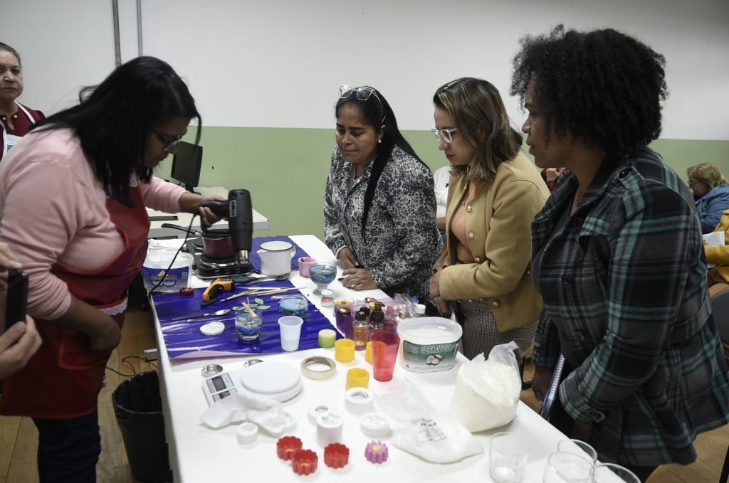 Com objetivo de capacitar a mulher para uma opção de geração de renda, estimulá-la ao empreendedorismo e até mesmo para que possa ter uma atividade que relaxe e a faça sentir-se bem, a Subsecretaria de Políticas para as Mulheres realiza ao longo deste mês oficinas gratuitas de confecção de velas aromáticas artesanais nas cinco unidades das Casas da Mulher Clara Maria. Nesta segunda-feira (11), um grupo de 20 pessoas participou da aula na unidade Pimentas, localizada no CEU Pimentas.
