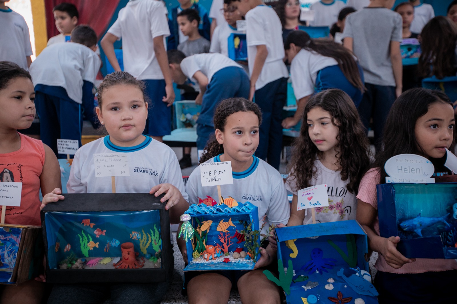 Os alunos do 3º ano do Ensino Fundamental da EPG Evanira Vieira Romão, na Vila Augusta, prepararam uma exposição de maquetes sobre o projeto Fundo do Mar, que contou com grande envolvimento das famílias. A exposição é resultado das aprendizagens em ciências da natureza, em que as crianças estudaram os animais marinhos, seus habitats, reprodução e as consequências da poluição.