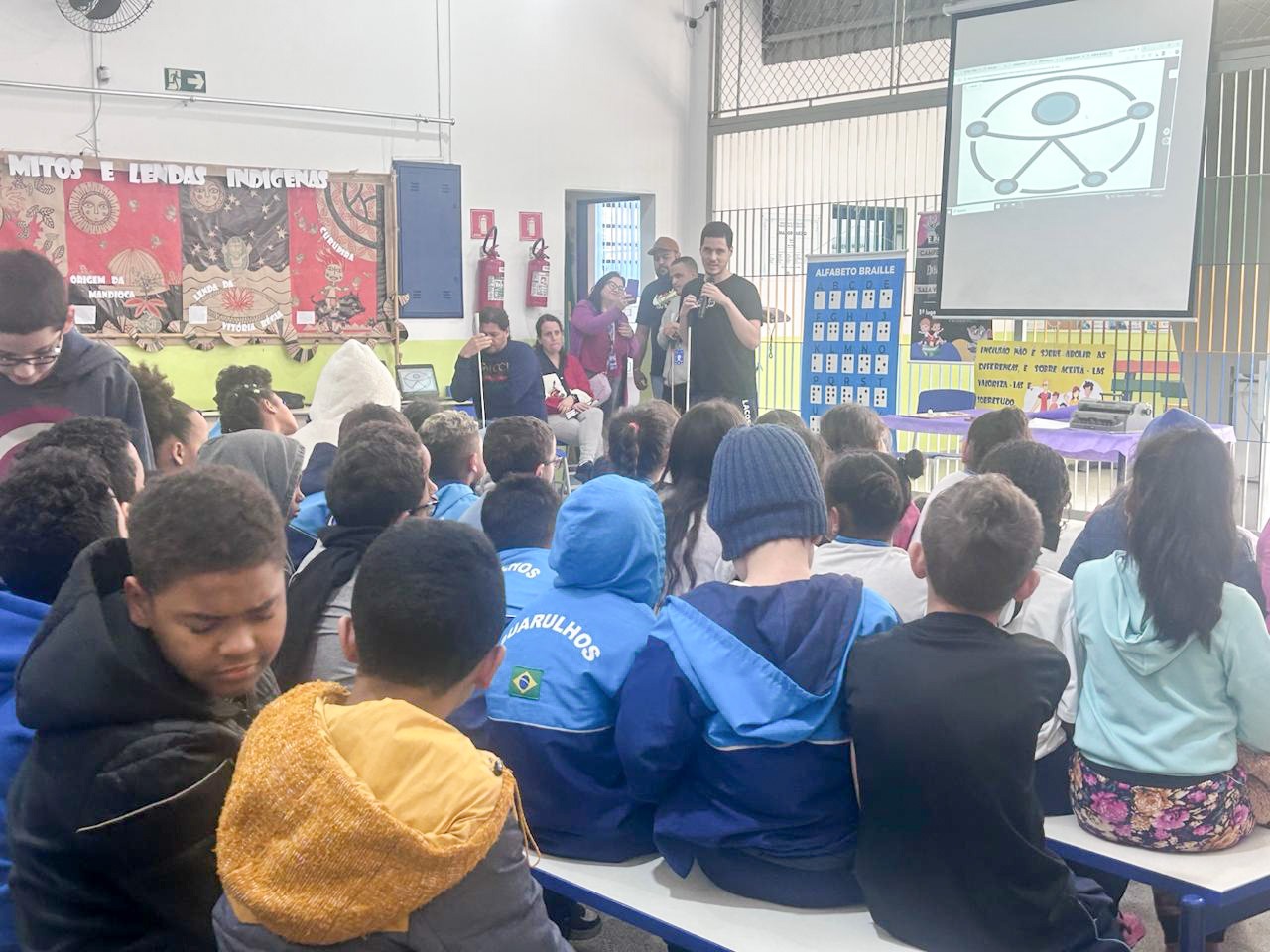 Na terça-feira (26), a EPG Amador Bueno, no Taboão, promoveu uma palestra enriquecedora envolvendo alunos, famílias e a equipe escolar sobre o tema, evento que contou com a presença da subsecretária de Acessibilidade e Inclusão, Mayara Maia, e da professora Vanessa Carrilho Lanzarotto, servidora da Prefeitura de Guarulhos e responsável pelos alunos com deficiência visual. Vanessa atua como educadora social, ministrando aulas do sistema Braille e Soroban (método do menor valor relativo).