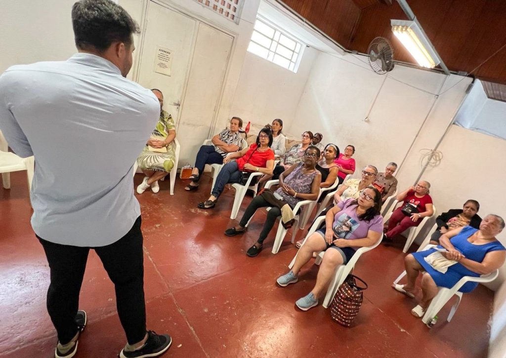 Nesta quinta-feira (4) uma turma de assistidas pela Casa da Mulher Clara Maria Haroldo Veloso participou da palestra Saúde da Mulher e Autoestima: Cuidar do Corpo, Valorizar a Vida, ministrada pelo advogado e professor de educação física, Rômulo Rosendo, no próprio equipamento localizado no Conjunto Habitacional Haroldo Veloso.