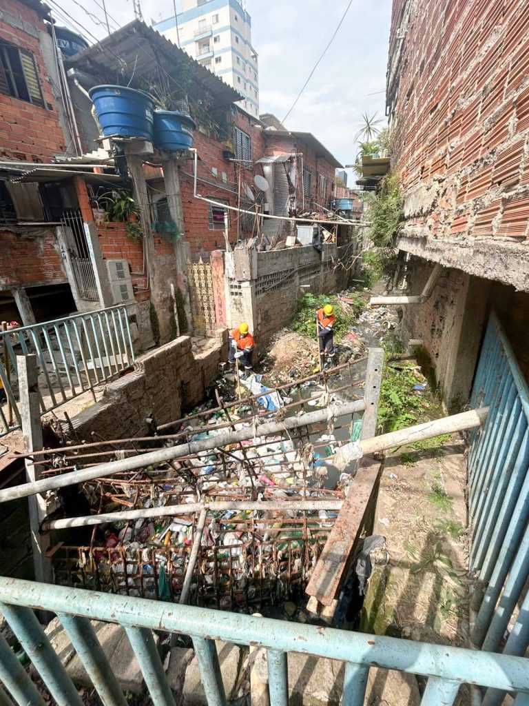 No Cabuçu, uma boca de lobo localizada na avenida Santa Catarina foi desobstruída com o auxílio de um caminhão hidrojato. O equipamento, que integra o sistema de drenagem de águas pluviais, estava comprometido por resíduos e detritos.
