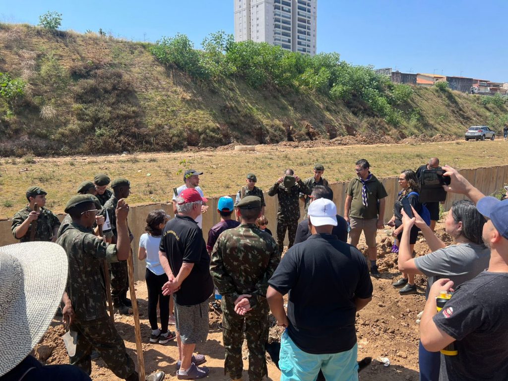 Cerca de 50 Voluntários participaram de uma ação de plantio realizada pela Prefeitura de Guarulhos e coordenada pela equipe de arborização da Secretaria do Verde, Clima e Sustentabilidade, no sábado (20). A atividade contou com o Tiro de Guerra, a Universidade de Guarulhos, a Sabesp e os escoteiros do Grupo Gaia – Rotary, além dos educadores ambientais da secretaria.