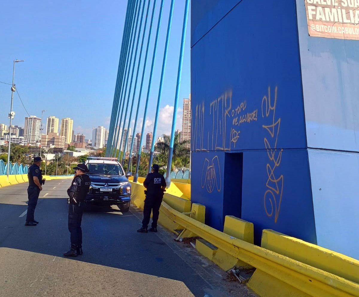 A GCM (Guarda Civil Municipal) acabou com a ação criminosa de dois pichadores que tentaram vandalizar o Viaduto Cidade de Guarulhos, um dos principais pontos da cidade. Agentes da Inspetoria Sul prenderam o casal na madrugada de domingo (21), com o auxílio das câmeras de monitoramento da Central de Segurança Integrada (CSI). A equipe chegou rapidamente e flagrou a ação criminosa, impedindo um dano ainda maior.