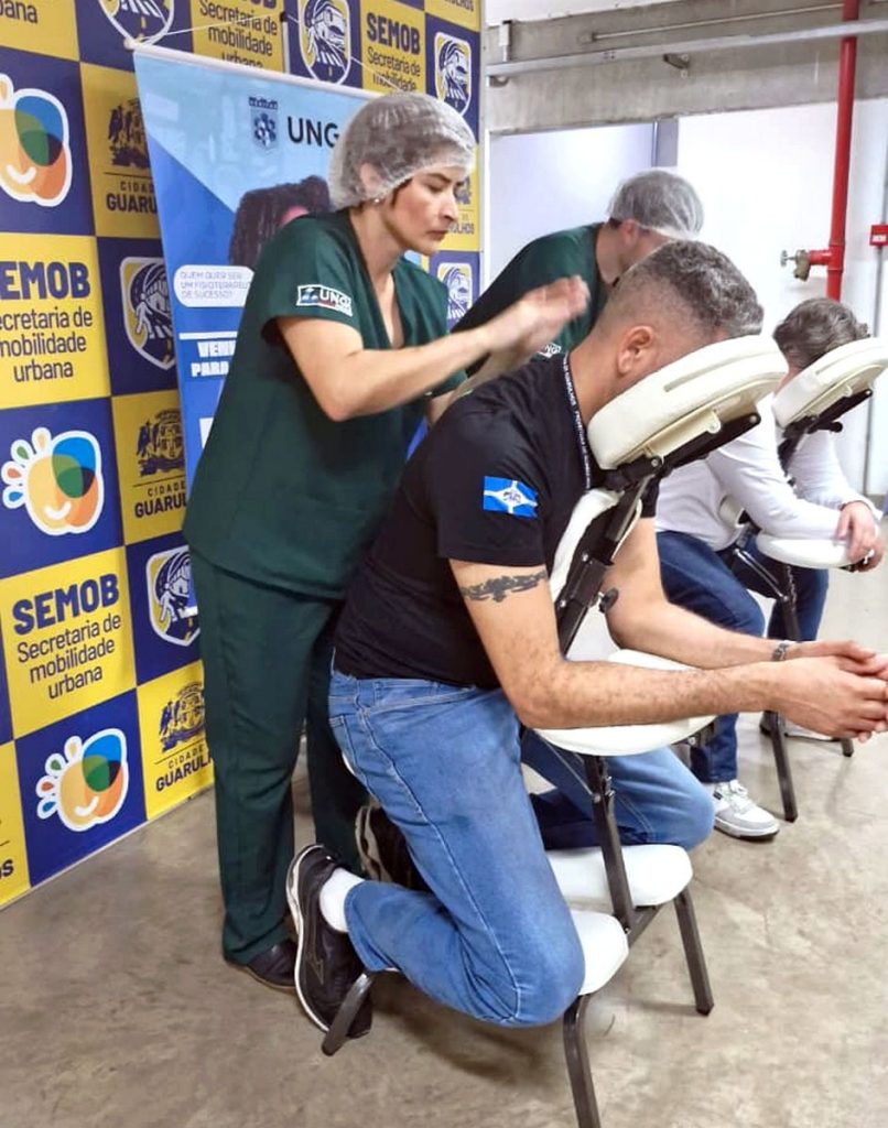Durante todo o dia, os agentes puderam participar de sessões de massagem e spa para as mãos oferecidos pela Universidade Guarulhos (UNG), além de cortes de cabelo realizados pelo Instituto Ana Hickmann. Também tiveram a oportunidade de aferir a pressão arterial e a glicemia, em parceria com a escola Grau Técnico.