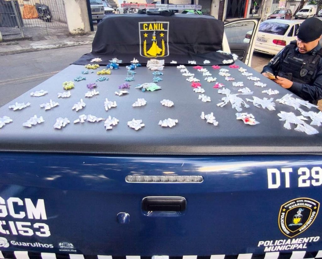 A Guarda Civil Municipal (GCM) de Guarulhos prendeu um traficante e apreendeu um adolescente em duas ocorrências distintas realizadas neste fim de semana, que resultaram na retirada de mais de 3 kg de entorpecentes das ruas.