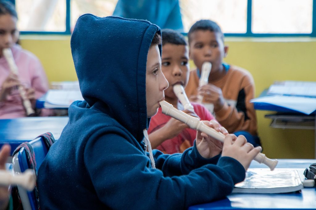 O professor destaca ainda que a combinação da percepção musical com a audição é um processo poderoso e benéfico, contribuindo para o desenvolvimento da sensibilidade infantil. Nas aulas, as crianças aprendem a tocar flautas e instrumentos de percussão, além de socializarem técnicas com os colegas que trazem seus próprios instrumentos.