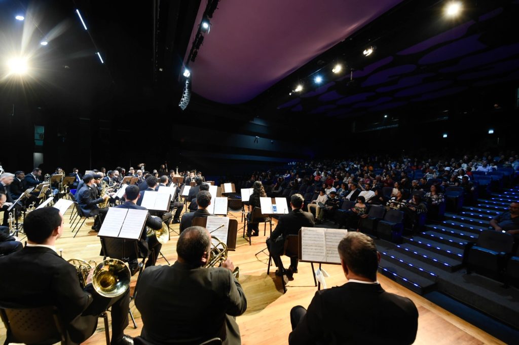 A Banda Sinfônica de Guarulhos levou mais de 300 pessoas para assistirem ao concerto Paisagens Sonoras realizado no Teatro Adamastor, na noite de quinta-feira (2). Regido pelo maestro Marcelo Mendonça, o espetáculo reuniu repertório com ritmos festivos que destacam a força da música de concerto contemporânea com obras de grandes compositores.