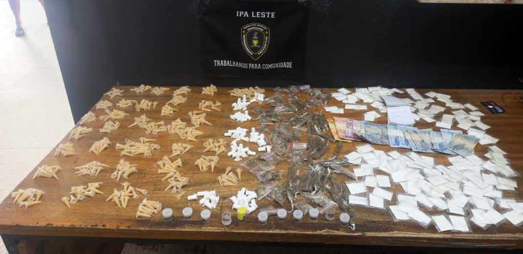 Já no bairro Água Chata, agentes da Inspetoria Leste prenderam um homem com 900 gramas de drogas, entre 636 porções de cocaína e 104 de maconha, além de R$ 66,00 em espécie. A abordagem ocorreu na rua dos Canários, durante patrulhamento preventivo.
