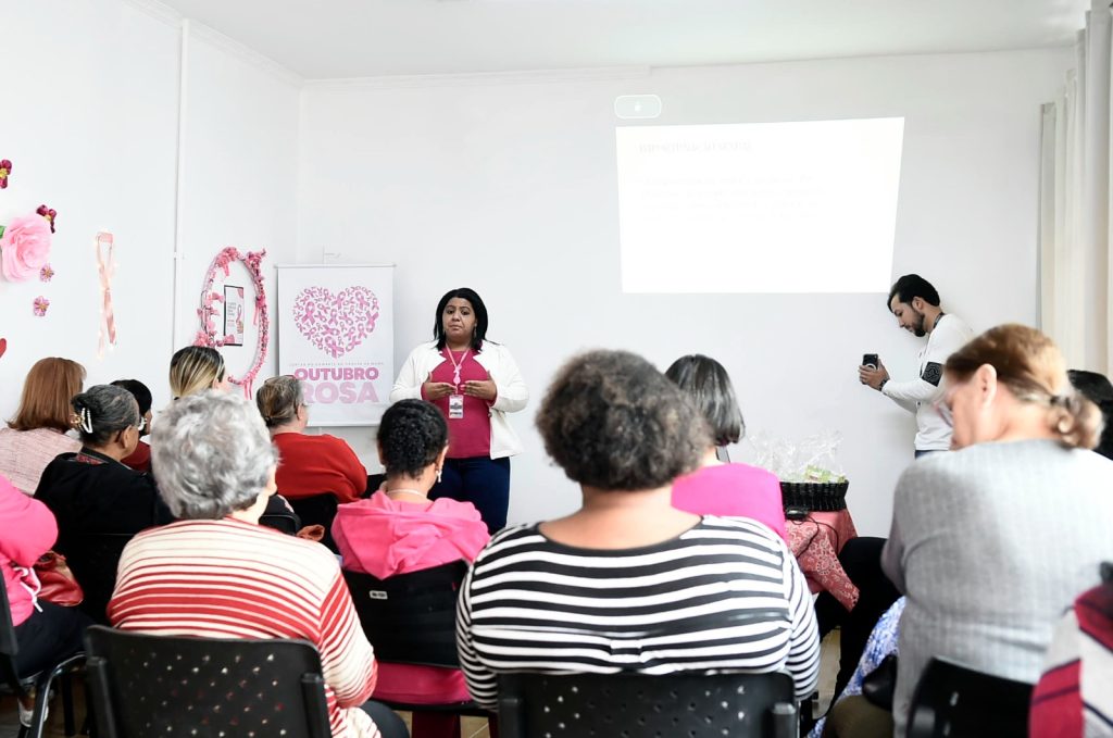 A roda de conversa foi comandada pela médica de família da UBS Tranquilidade, Tatiane Regina Ramos, que abordou diversos assuntos como a importância do autoexame de mama, a prevenção ao câncer de colo de útero com a vacina contra HPV, importância da mamografia, entre outros.
