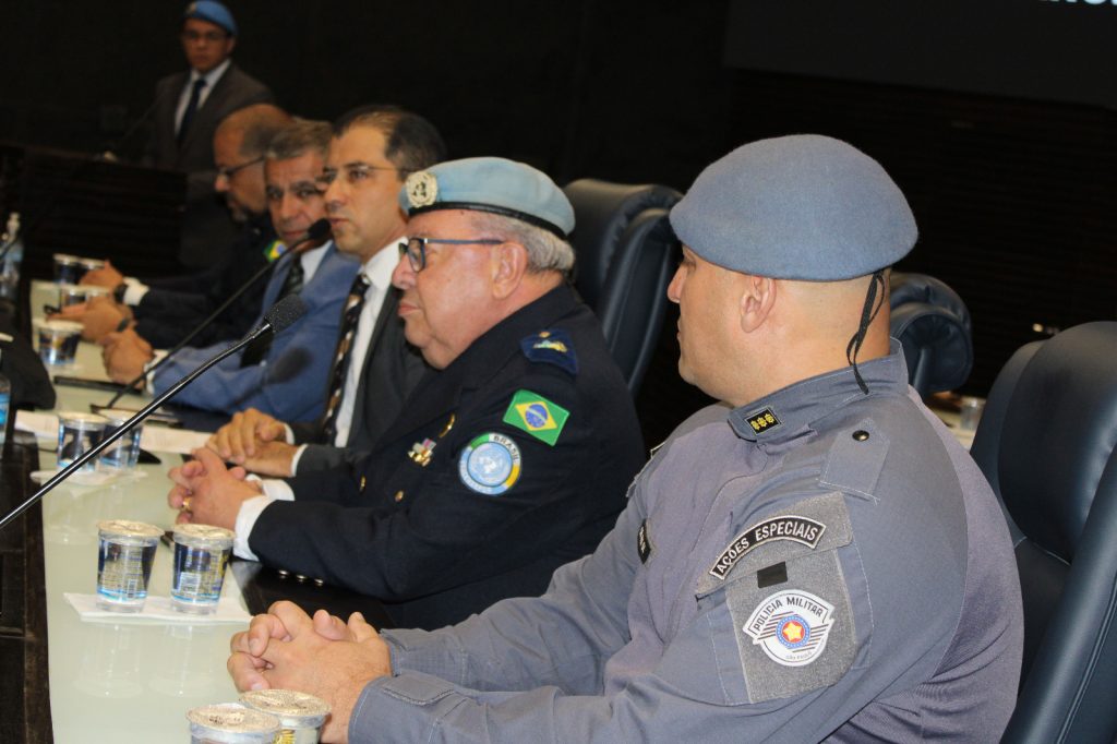 A mesa de honra foi composta pelo vereador Ticiano, presidente da solenidade; pelo presidente da ABFIP, sr. Walter Melo de Vargas; pelo secretário de Segurança Pública, coronel Hélio; pelo coronel PM Adalberto Gil Lima Mendonça, comandante do CPM/M-7; pelo subtenente Helbis Patrick de Oliveira Tomaz, representante do Tiro de Guerra; pelo superintendente da Polícia Rodoviária Federal, sr. Edson Junior; pelo delegado seccional de Guarulhos, dr. Waldir Antonio Covino Junior; e pela bispa Gisele Mourão, da Igreja ANAD.