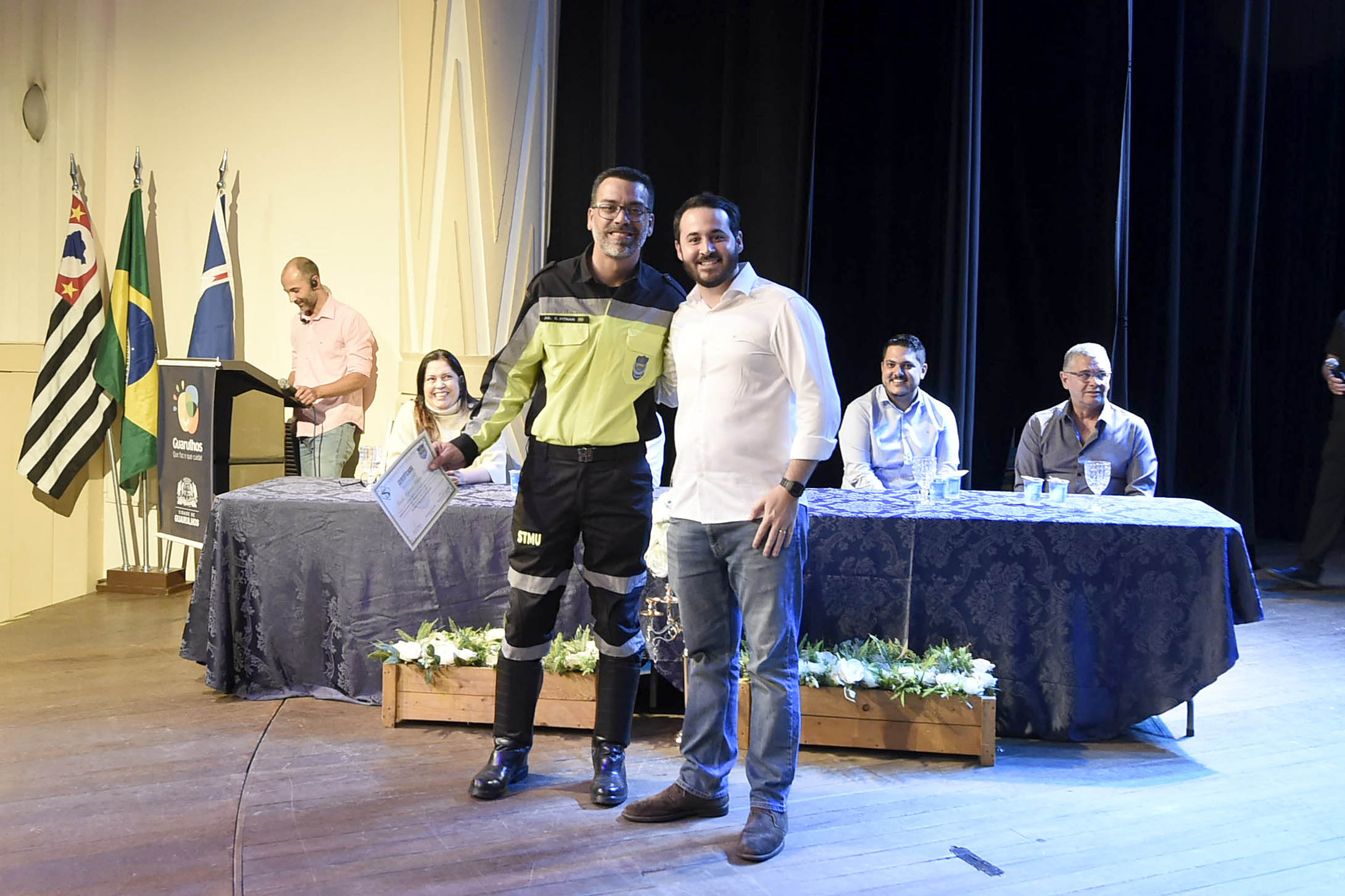 A Prefeitura de Guarulhos, por meio da Secretaria de Mobilidade Urbana (Semob), promoveu na tarde desta segunda-feira (10), no Teatro Padre Bento, a formatura de 27 novos agentes de transporte e trânsito, sendo 24 servidores guarulhenses e outros três de Valinhos, que participaram da formação após convite à administração do município localizado na Região Metropolitana de Campinas.