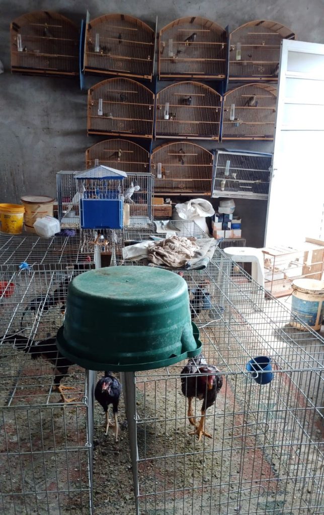 Agentes da Inspetoria Ambiental da GCM localizaram neste domingo (15) um criadouro ilegal com 114 aves na rua Arminda Maurus, no Jardim Alvorada. Entre elas, 19 silvestres — pixarro e coleirinha — mantidas em gaiolas sem anilhas, além de 95 galos da raça mura.