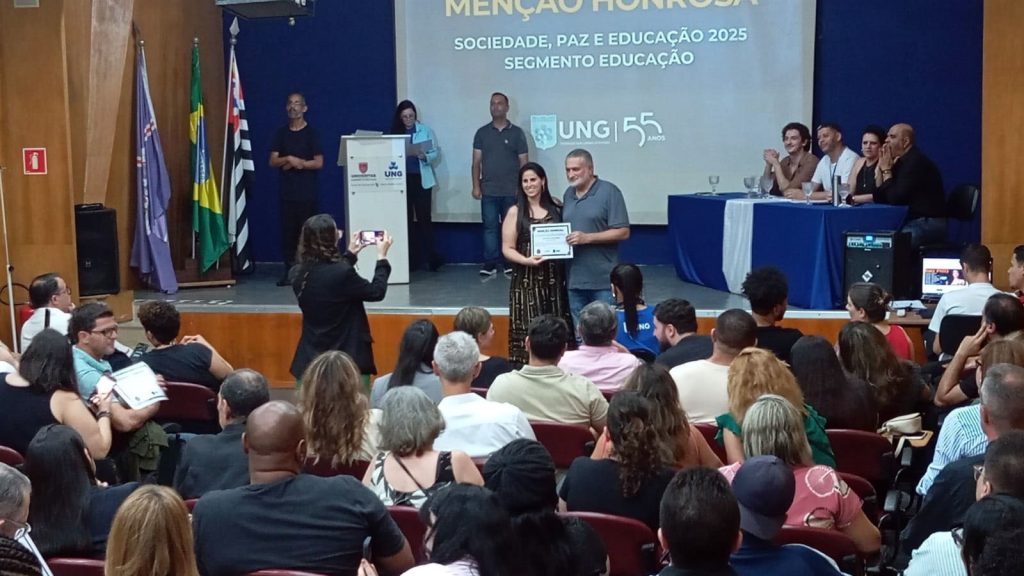 Cerca de 90 profissionais da rede municipal de educação receberam, na segunda-feira (17), a Menção Honrosa – Sociedade, Paz e Educação 2025, homenagem da Universidade Guarulhos (UNG) dedicada a diversos segmentos da sociedade, com destaque aos servidores das áreas da saúde, educação, entre outras.