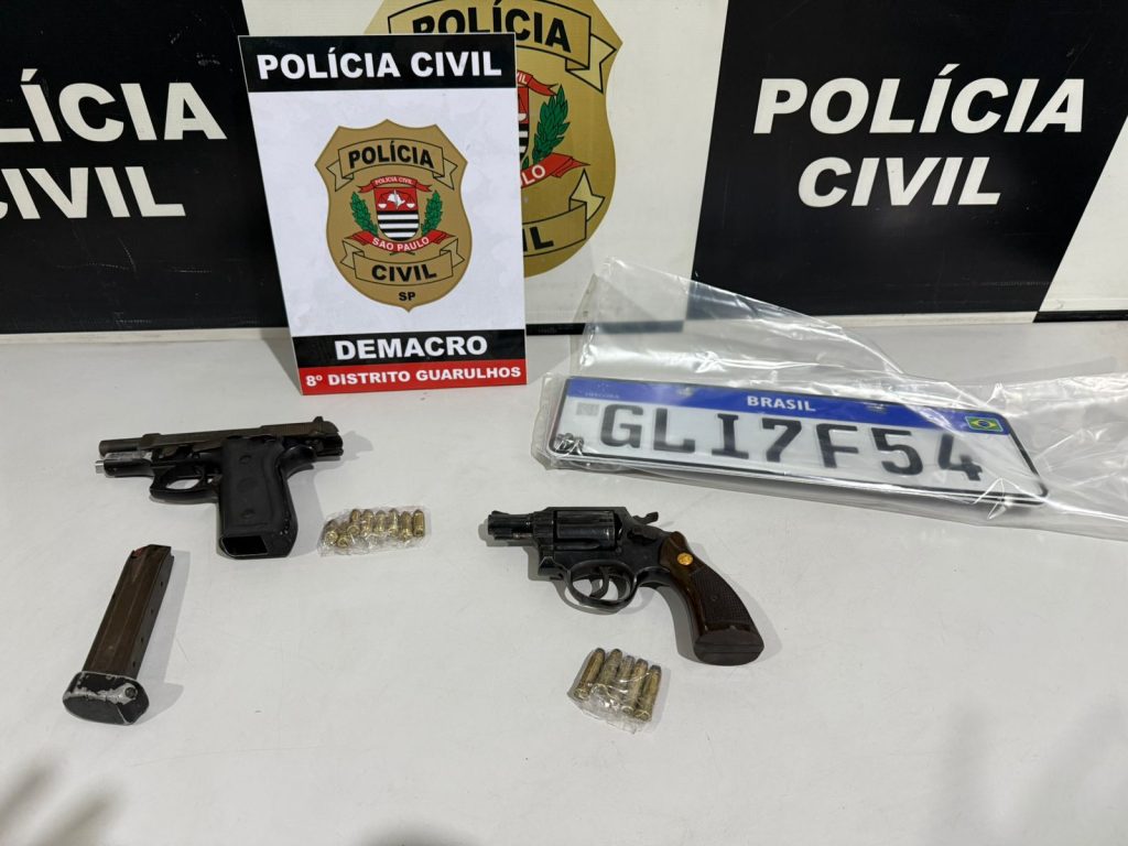 A Polícia Civil de Guarulhos, através do 8º DP, impediu um assalto em andamento na madrugada de terça-feira (02) na sede da Transportadora Cast Logística Ltda., após equipes de investigação serem acionadas pelo representante da empresa. Ao chegarem ao local, os agentes constataram que três homens armados mantinham funcionários sob grave ameaça. A ação tática resultou na rendição dos criminosos, que abandonaram as armas com numeração suprimida antes de serem presos. As vítimas foram libertadas sem ferimentos.