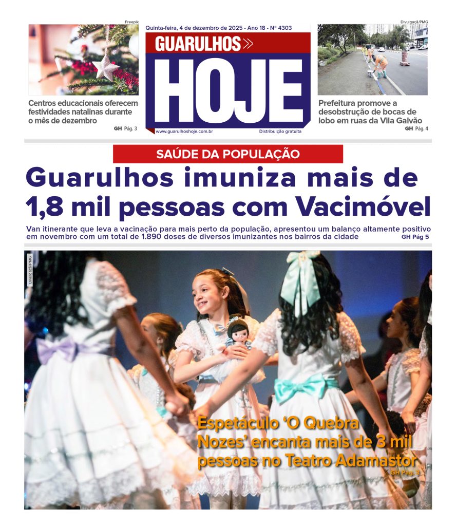 Jornal Guarulhos Hoje – Ed. 4303 – 4/12/2025 Redação Guarulhos Hoje 19 horas atrás Abrir em tela cheia
